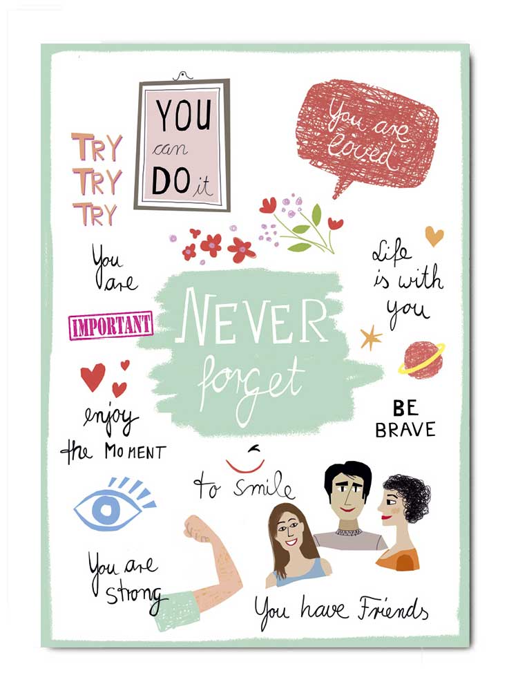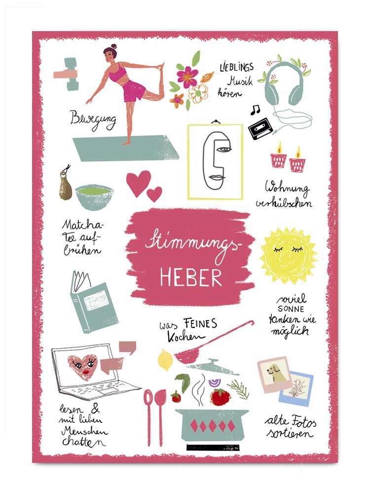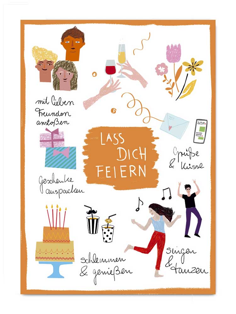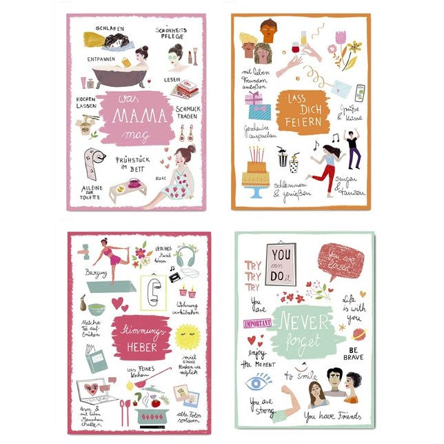 Set bestehend aus 4 fröhlichen Postkarten aus festem Karton.